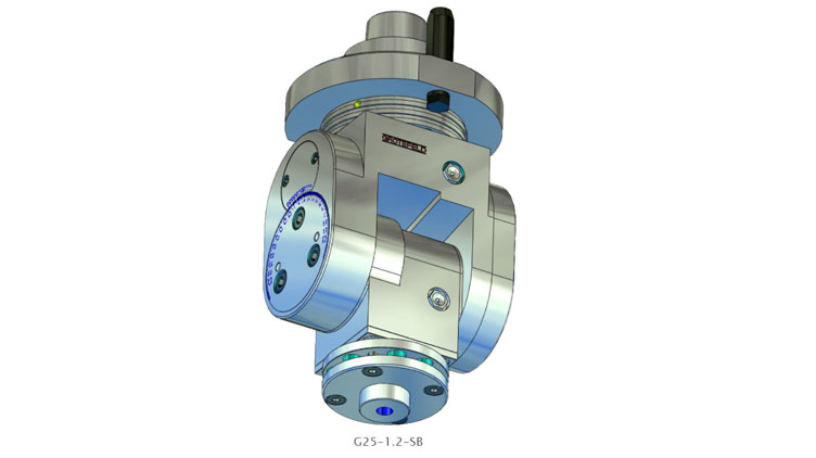 G25系列的角頭具有可根據刻度進行無級調整的加工主軸。設置范圍從 0°(垂直)擴展到兩側最大 100°。主軸的旋轉方向與驅動器的旋轉方向相反。